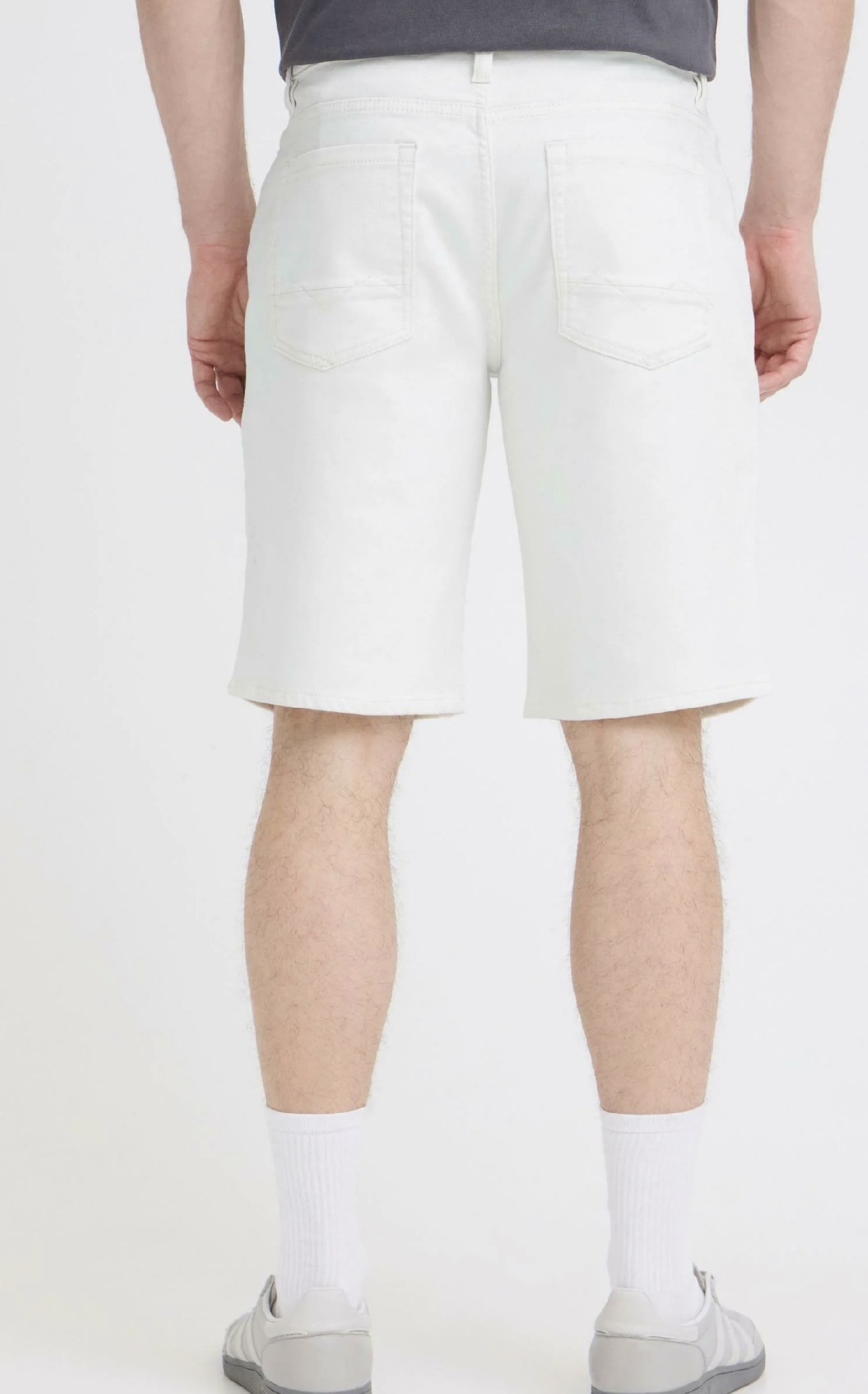 Men’s white bermuda shorts made of cotton and elastane, with above-the-knee length. Featuring belt loops, front zip, and back pockets.