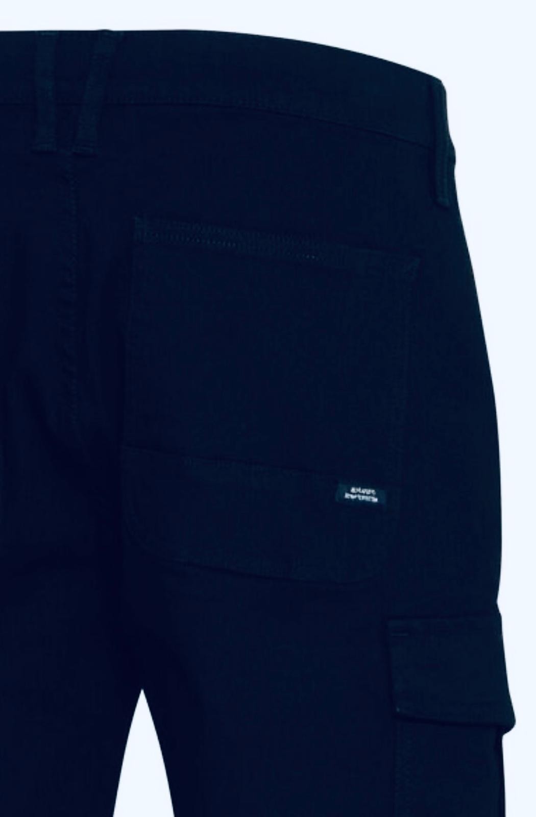 Bermuda da uomo blu, lunghezza al ginocchio con comode tasche laterali. Ideali per un look casual e funzionale, perfetti per le attività all’aperto e il tempo libero.