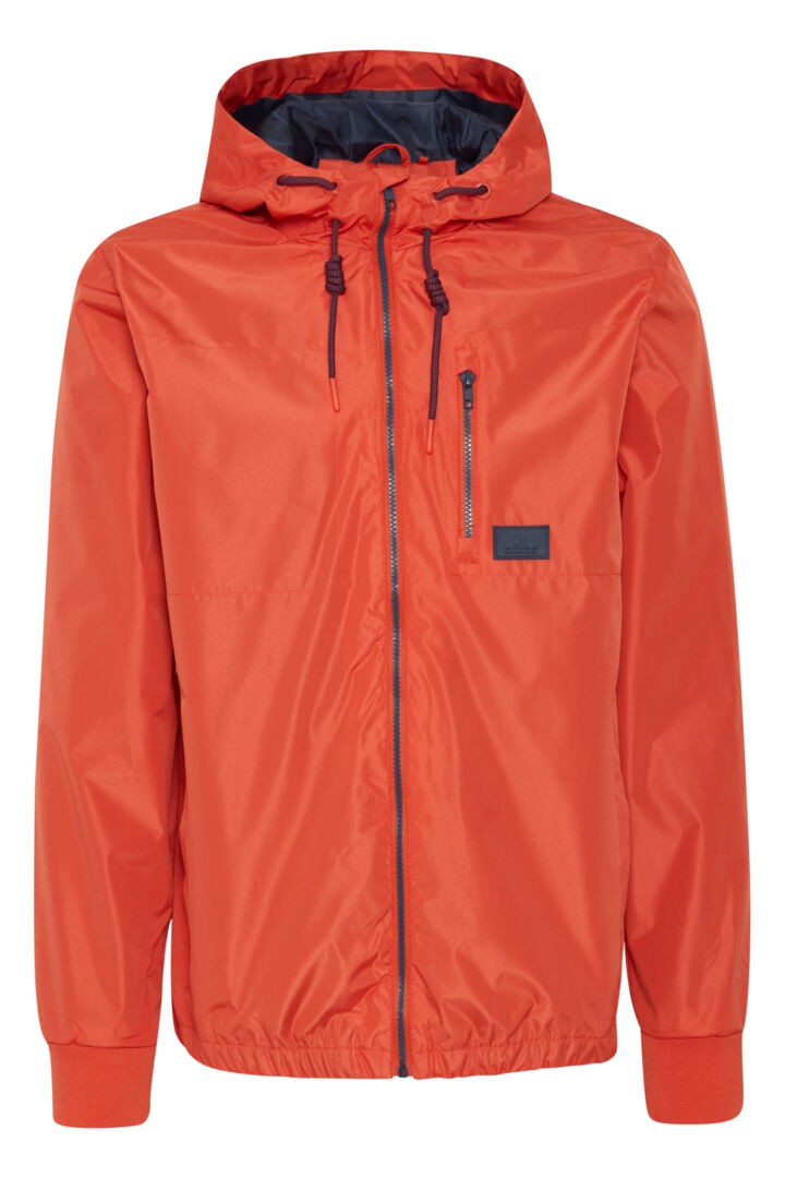 Giubbino impermeabile da uomo colore rosso/corallo, leggero e traspirante, chiusura zip e cappuccio, taschino interno e polso stretto. Perfetto per proteggerti dalla pioggia con stile, ideale per uso quotidiano e attività outdoor.
