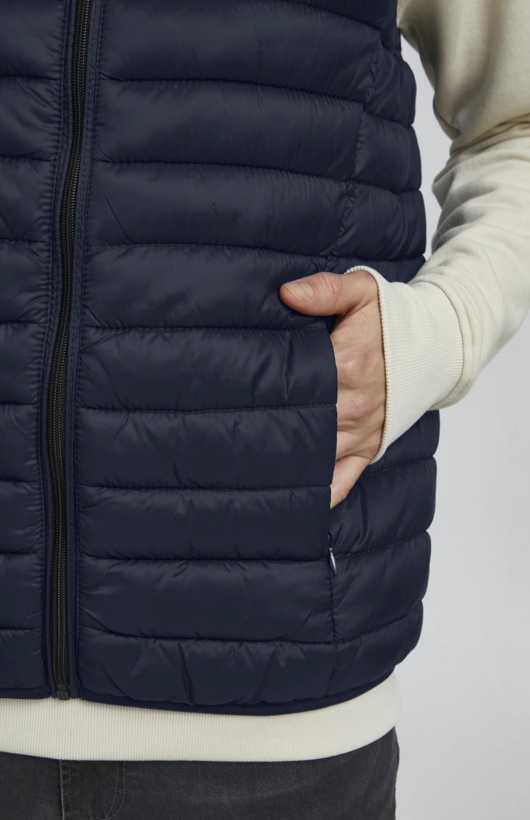 Giubbino smanicato con zip in nylon dal design essenziale e monocromatico. Realizzato interamente in nylon, con imbottitura e fodera anch’esse in nylon, presenta chiusura centrale a cerniera e tasche con zip. Vestibilità regolare e linea dritta, ideale per uno stile pratico e versatile.
