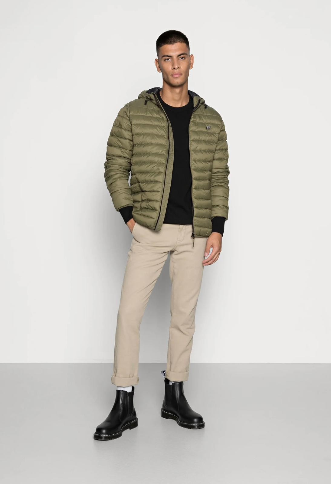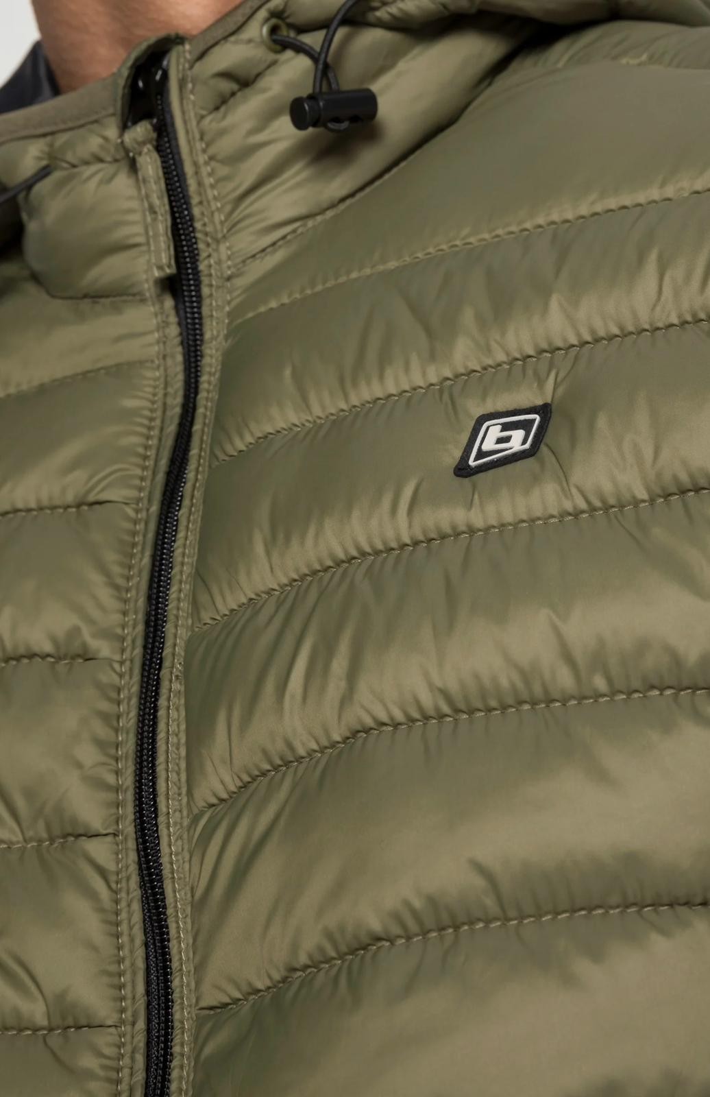 Giubbino con cappuccio e zip in nylon dal design semplice e monocromatico. Realizzato interamente in nylon, compresi imbottitura e fodera, presenta chiusura centrale a cerniera, tasche con zip e polsini elastici. Vestibilità regolare e linea dritta, ideale per uno stile pratico e versatile.