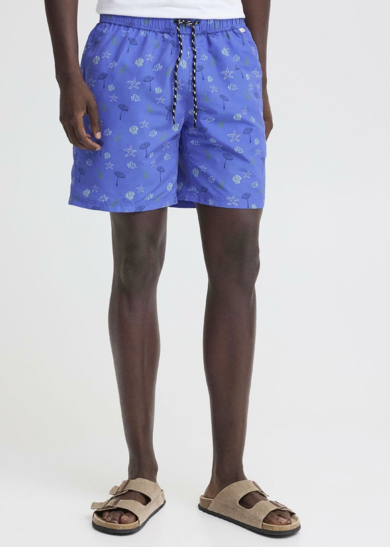 Costume da uomo, laccio in vita con fondo blu, realizzato in tessuto leggero e traspirante. Ideale per la spiaggia o la piscina, con un design fresco e moderno.